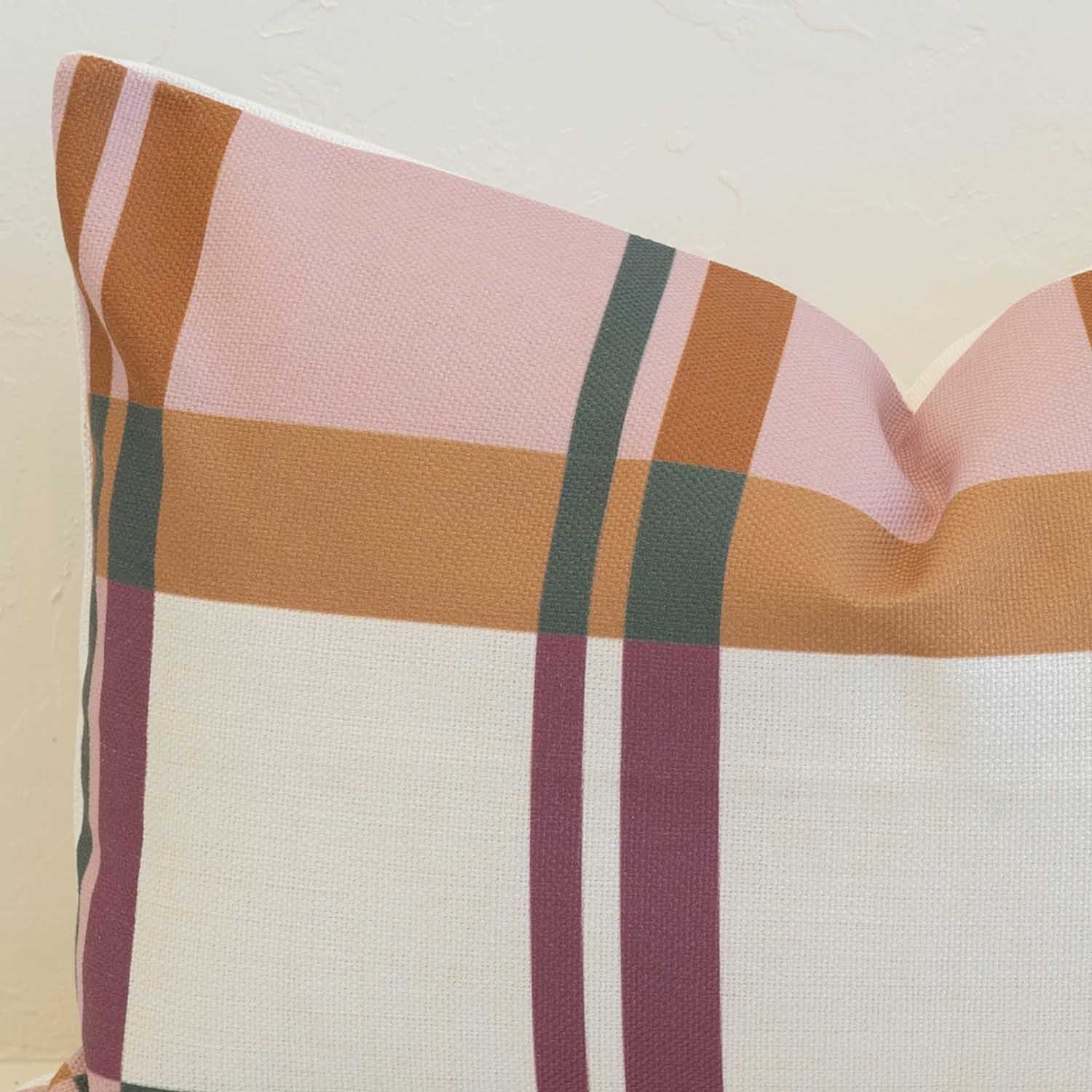 The Amora Pink Plaid Cushion Cover features a broad plaid pattern in muted pink and neutral tones, adding warmth and definition to a room. The rectangular format introduces variation when layered with square cushions. Designed to work easily with other Amora styles and the Classics range, it’s long-lasting, machine washable, and suited to everyday styling.