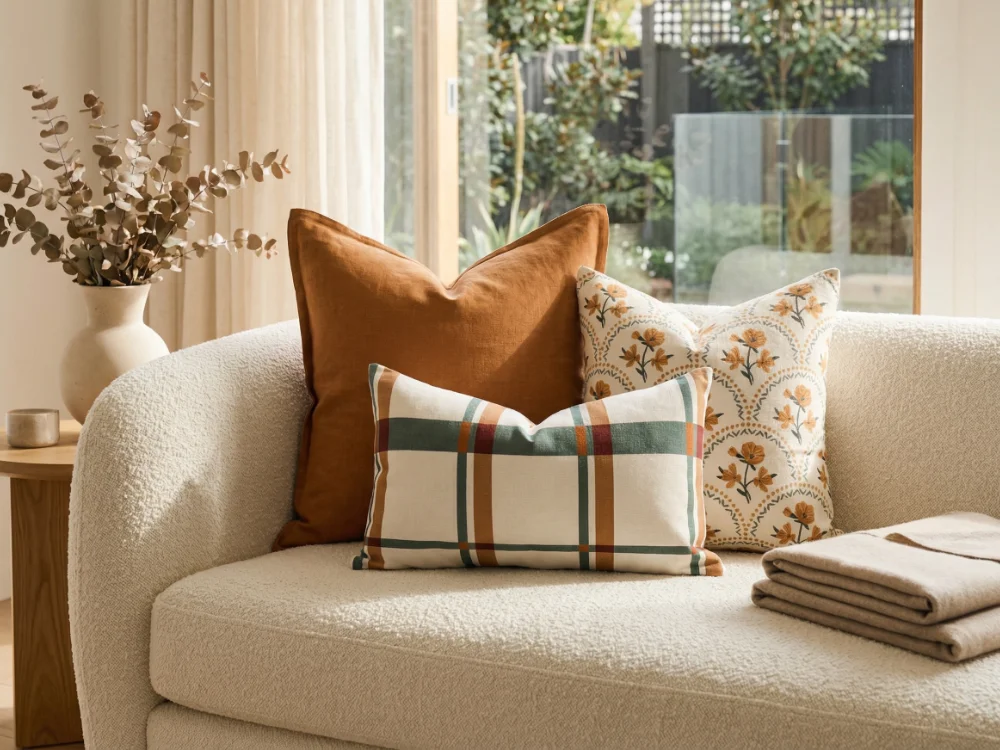 Rooted in rich, sun-warmed hues, our Amora range of cushions bring depth and personality to your living space. A palette of burgundy, burnt orange, ginger, tan and oatmeal creates a warm, inviting mood, while florals, plaids, stripes and classic checks add playful structure. This collection offers a versatile mix of colours, patterns and sizes designed to layer with ease.